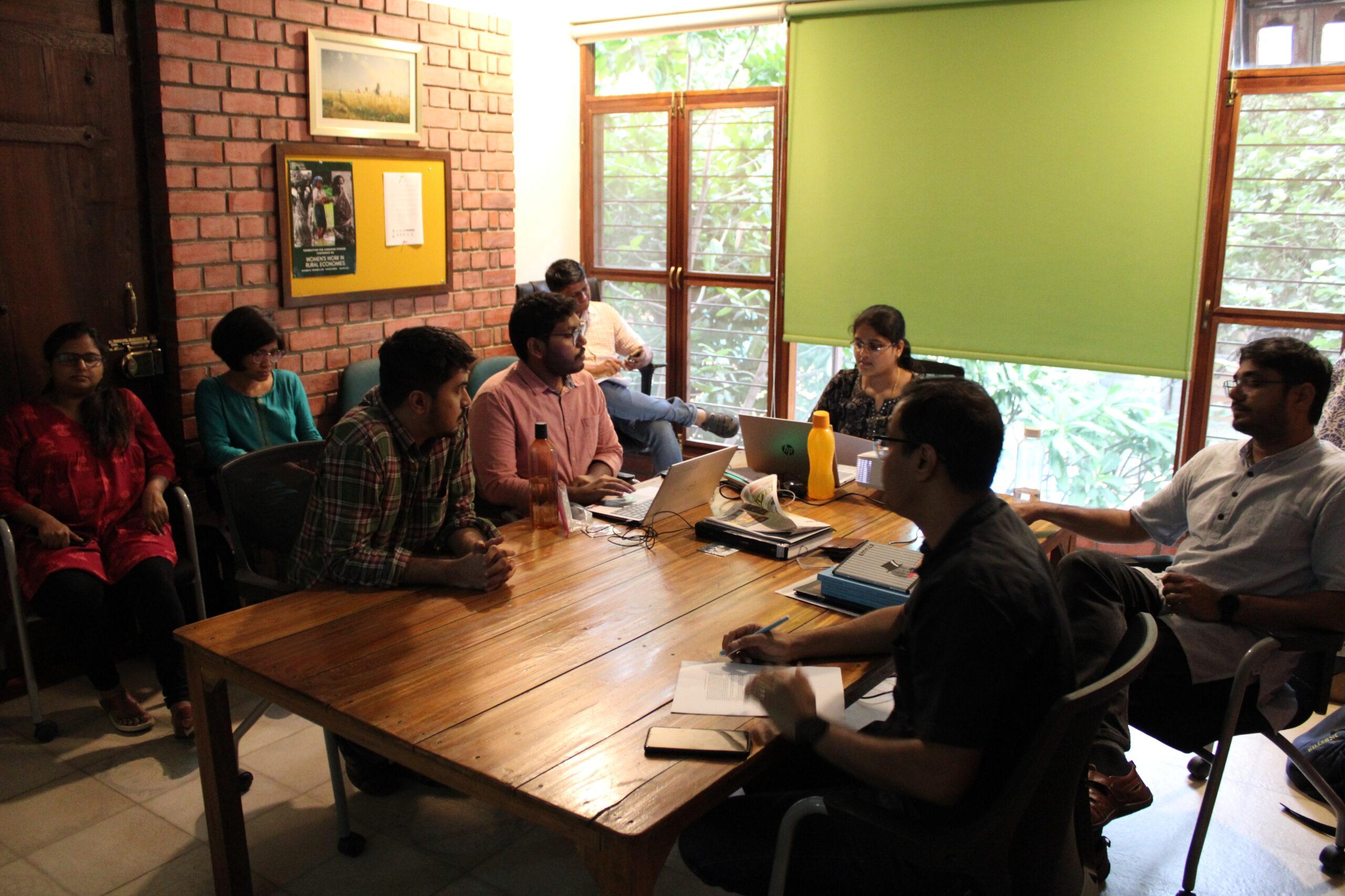 The seminar was presented in a hybrid mode. Professor V.K. Ramachandran, Professor Madhura Swaminathan, and V. Namasivayam joined the seminar online whereas Arindam Das, Dona Safui, Nikita Gupta, Sai Chandan Kotu, Sandipan Baksi, Sethu C.A, Tapas Modak, and Utkarsh joined from the Foundation’s office.