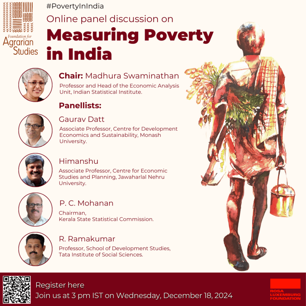 In this context, the Foundation for Agrarian Studies, in collaboration with Rosa Luxemburg Stiftung (RLS) conducted an online panel discussion on measuring poverty in India, at 3 pm IST, on Wednesday, December 18, 2024.