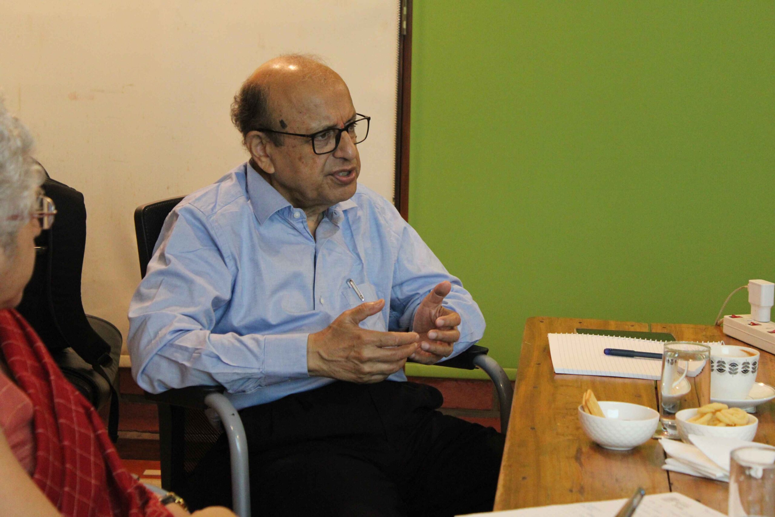 During the visit, Dr. Mruthyunjaya was introduced to the projects “The Dynamics of Agricultural Innovation in North India” and “The Dynamics of Agricultural Innovation in South India” by Tapas Modak, the Project Manager. He engaged in a detailed discussion with the Principal Investigators for the projects, Professor Madhura Swaminathan and Dr. Sandipan Baksi. Dr. Mruthyunjaya shared thoughtful feedback and offered valuable suggestions on how to take the project forward.