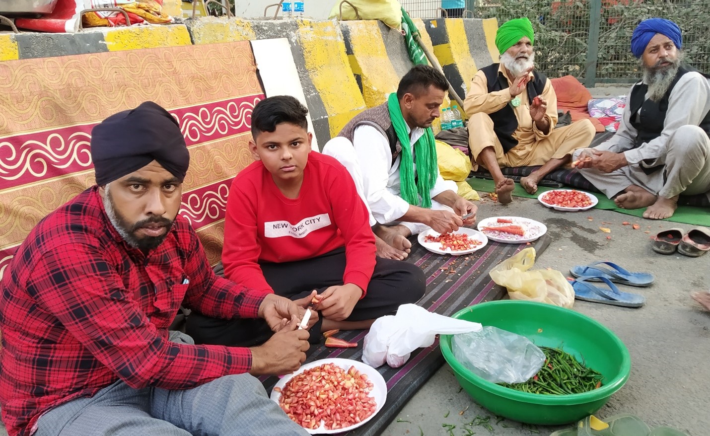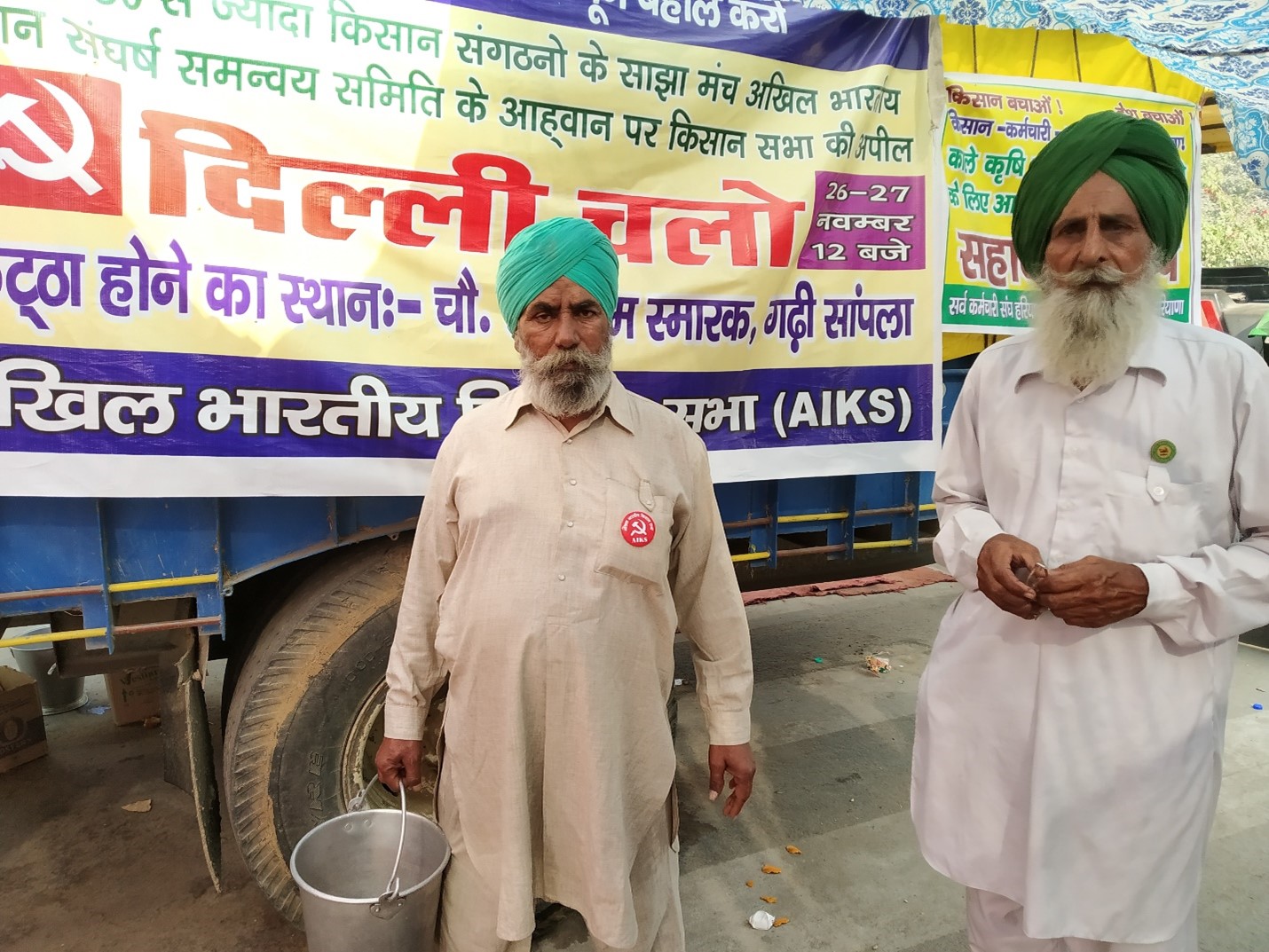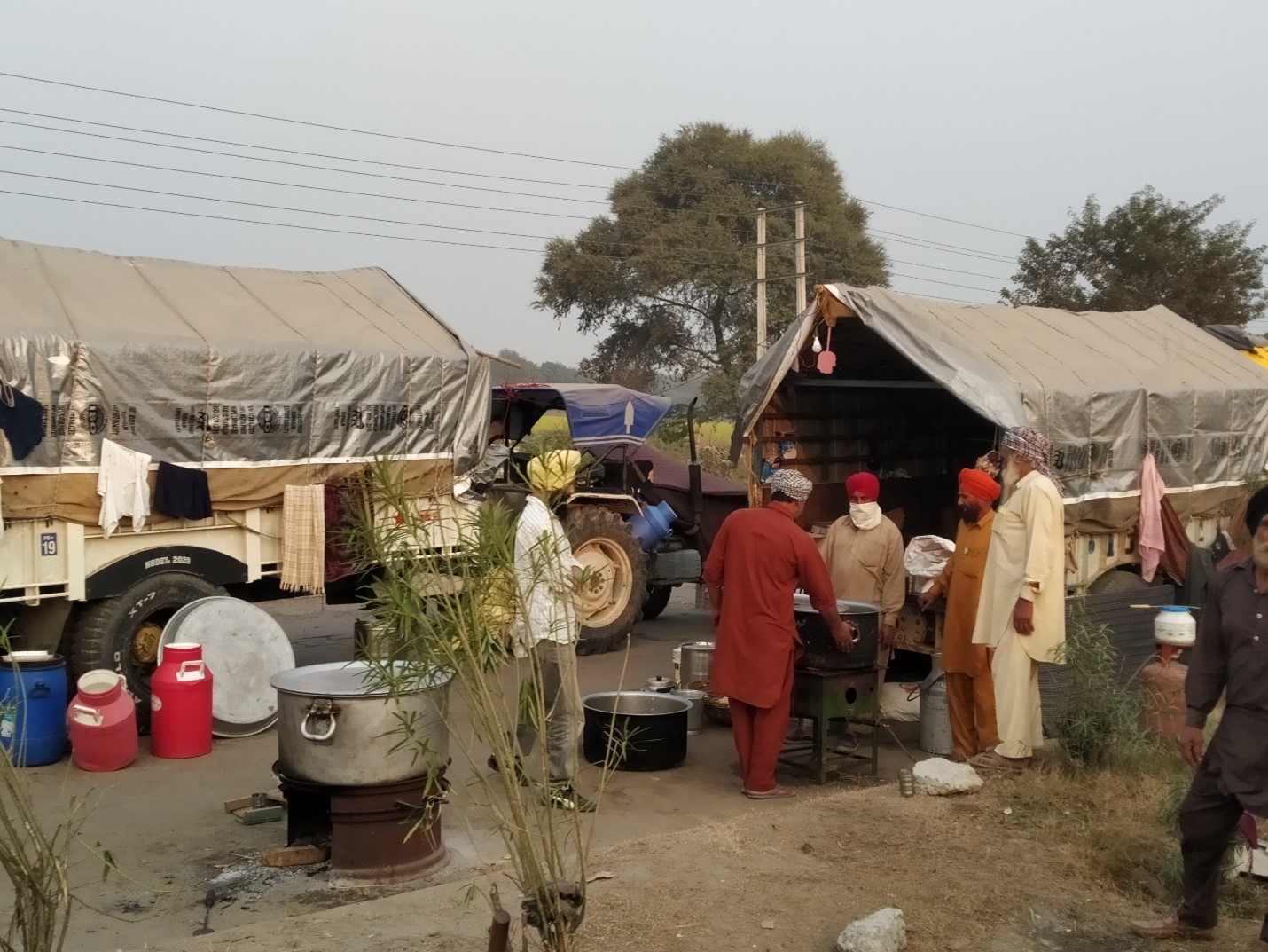 Support of various kinds is pouring in for the lakhs of farmers sitting on the Delhi borders. At Tikri border we saw trolleys, tankers, and other loading vehicles dispensing milk, curd, butter-milk, fresh vegetables, pulses, cooking oil and other essentials. These arrive in huge quantities from the neighbouring villages of Haryana. Some of these vehicles do rounds all through the day on the highway to refill stocks.