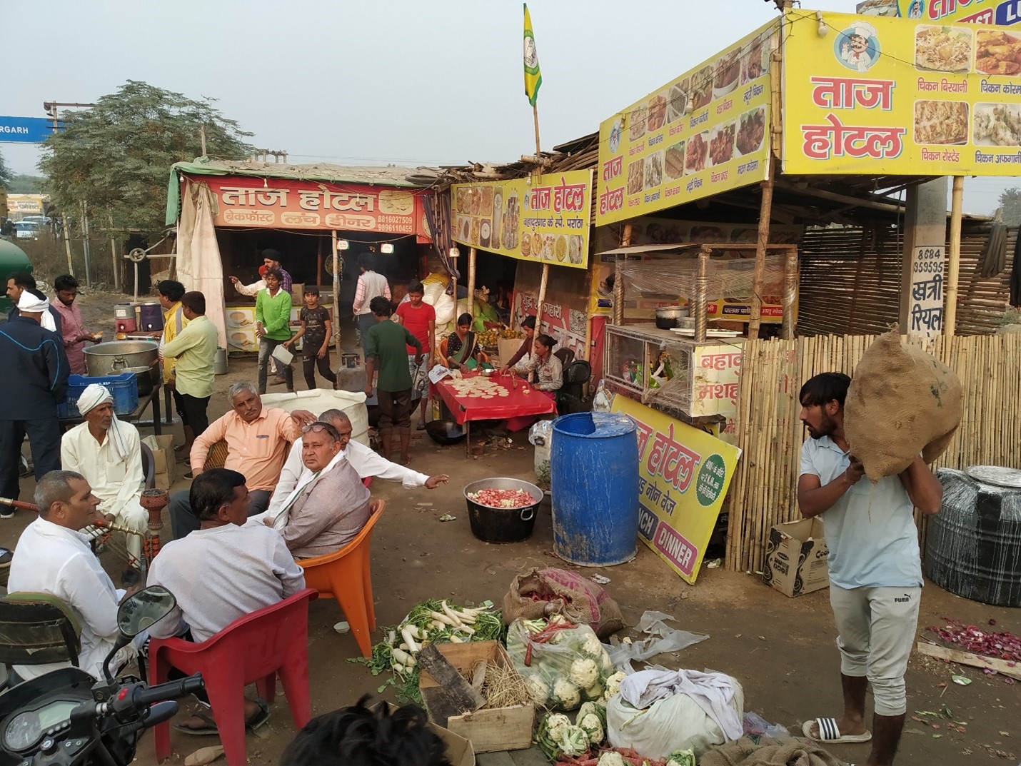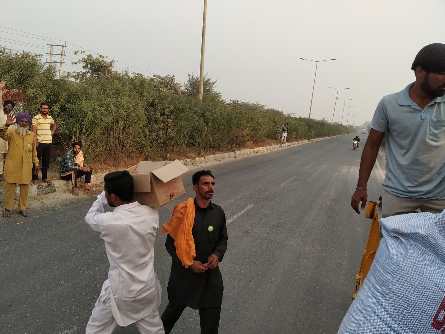 Punjab farmers and locals at a community kitchen run from a road side restaurant near Bahadurgarh. Picture: Author.