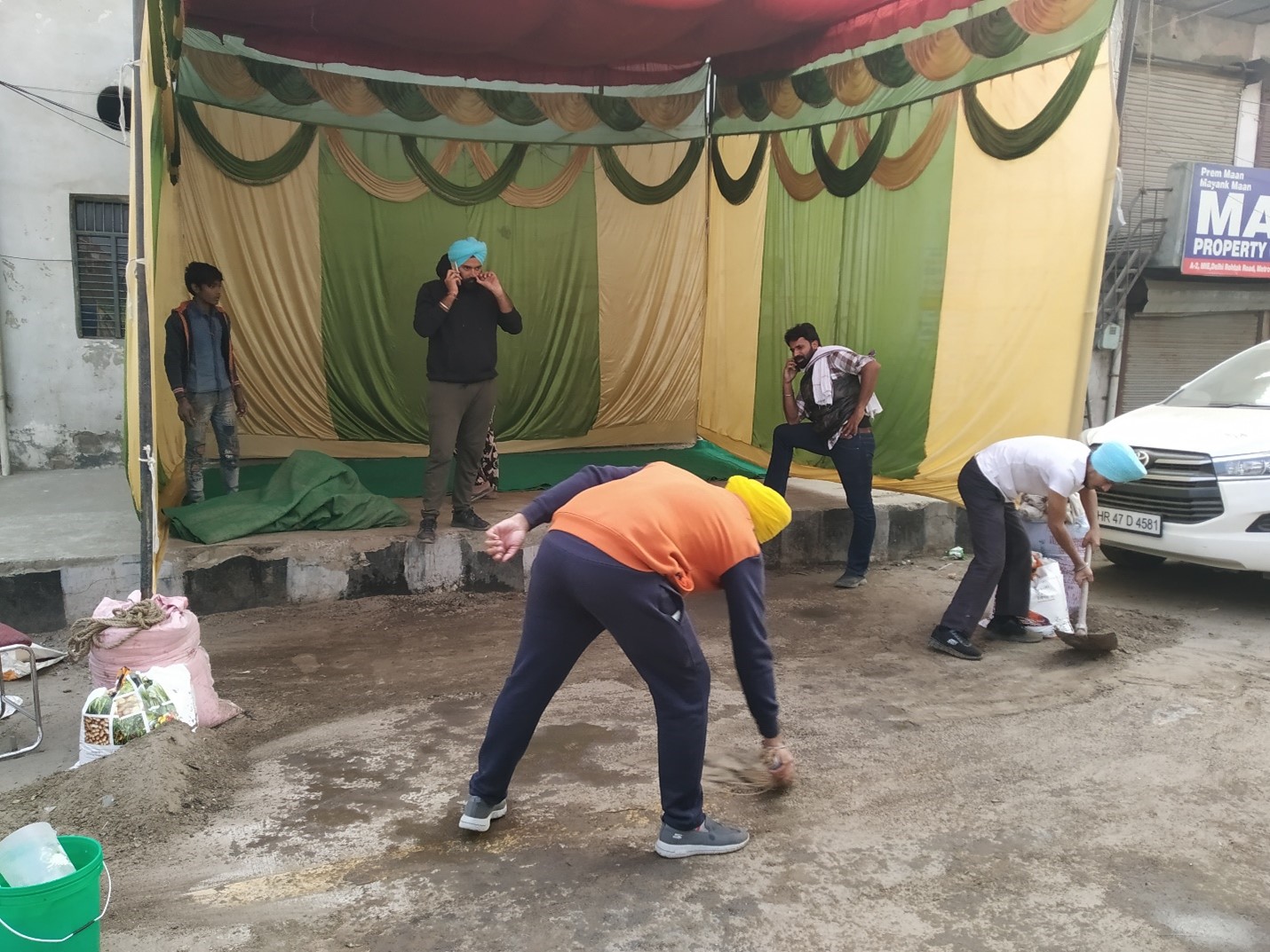 Supplies being unloaded by volunteers at a community kitchen on the outskirts on Bahadurgarh city. Picture: Author.